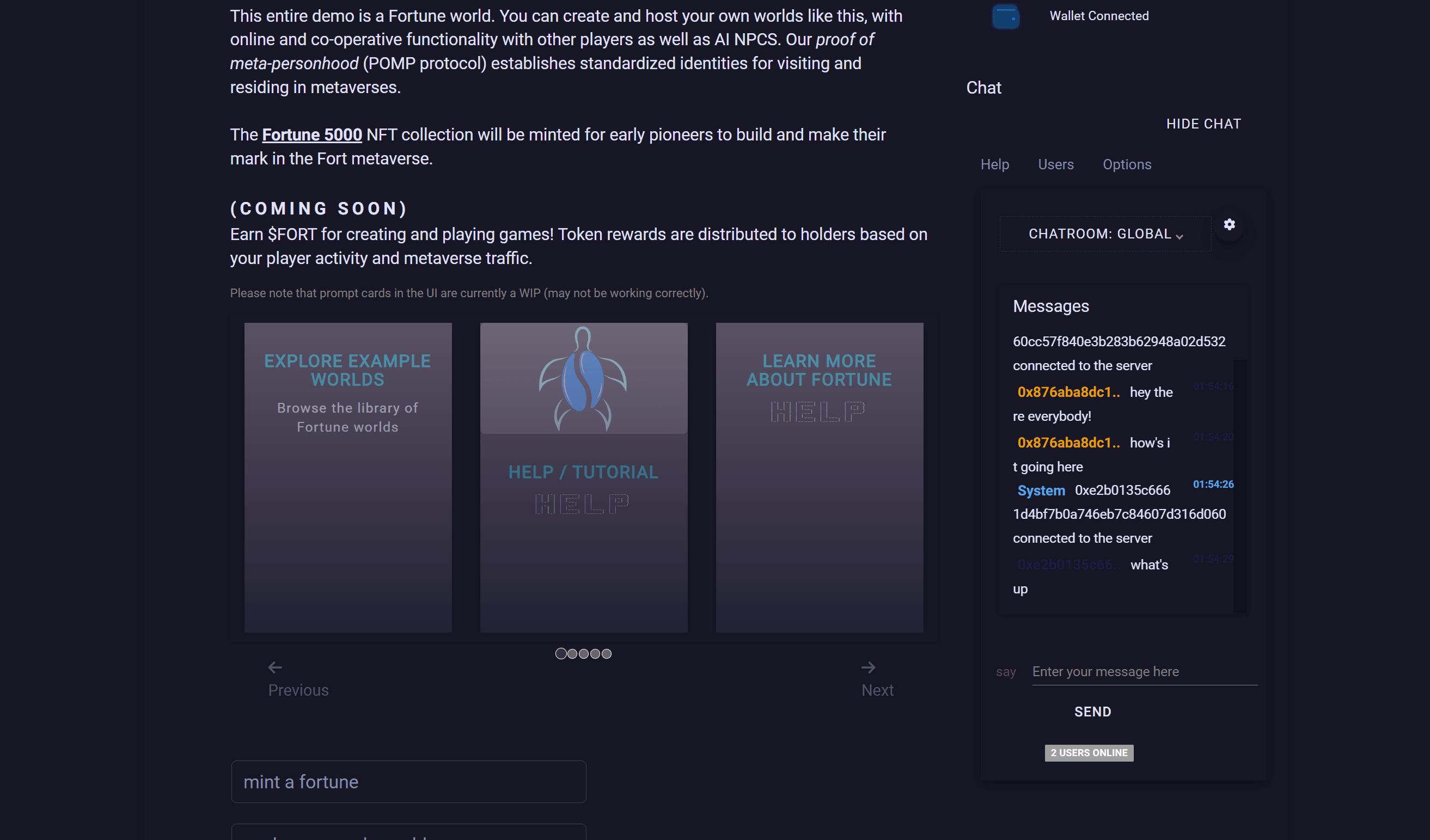 Eventually, Fortune worlds can incorporate dynamic gameplay mechanics with AI NPCs using generative AI techniques using LLMs. This will greatly empower creators in the creation of their worlds, and allow for immersive and complex narrative building.