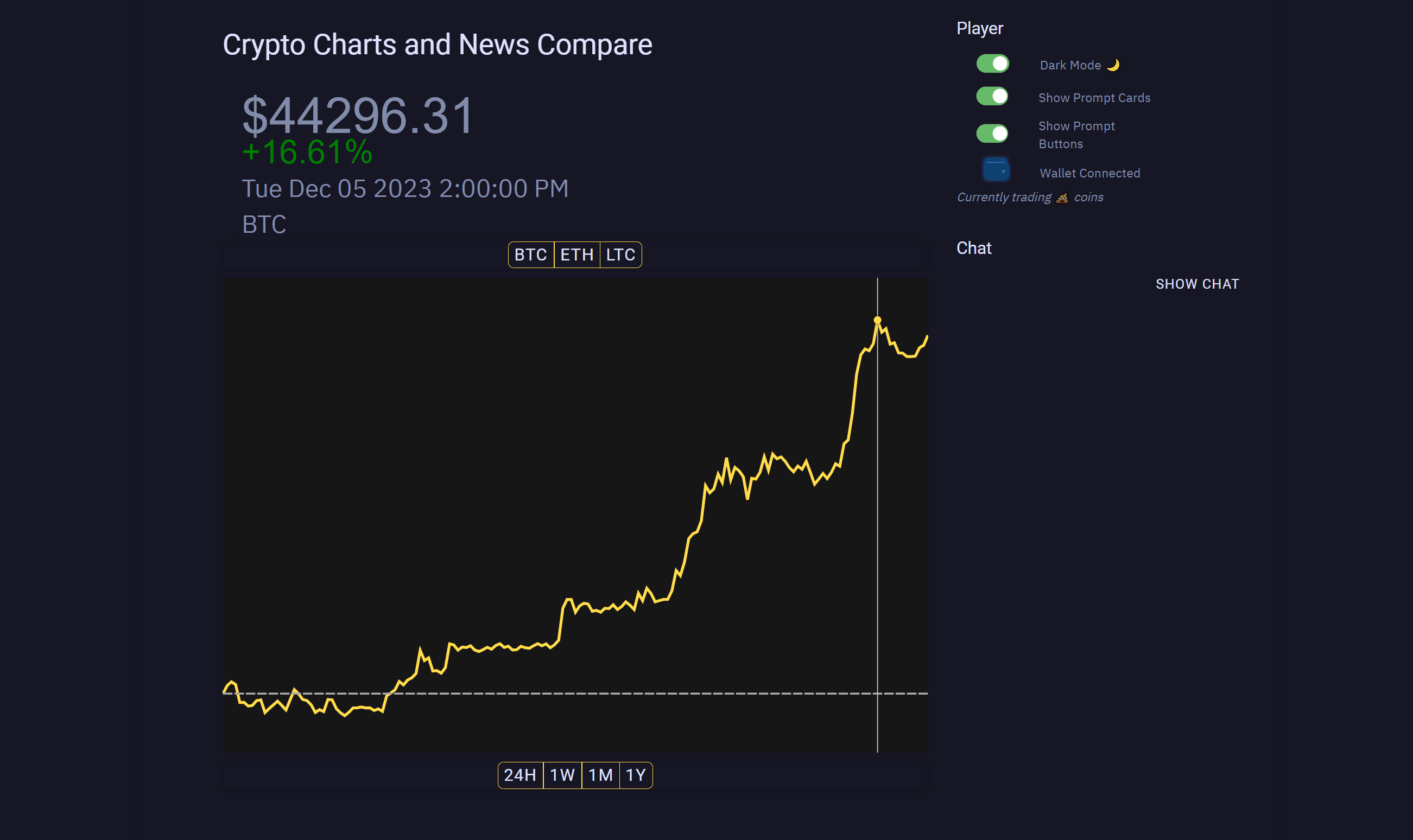 Web app for comparing crypto charts and news that uses a crypto pricing API in Fortune