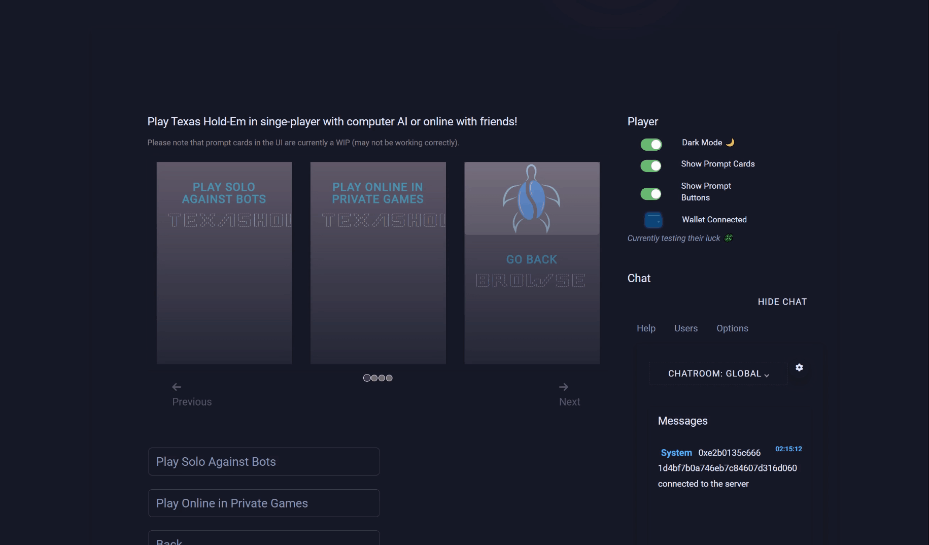 Players must authenticate with their web3 wallet to be connected to the chatrooms, and their usernames are their wallet addresses.