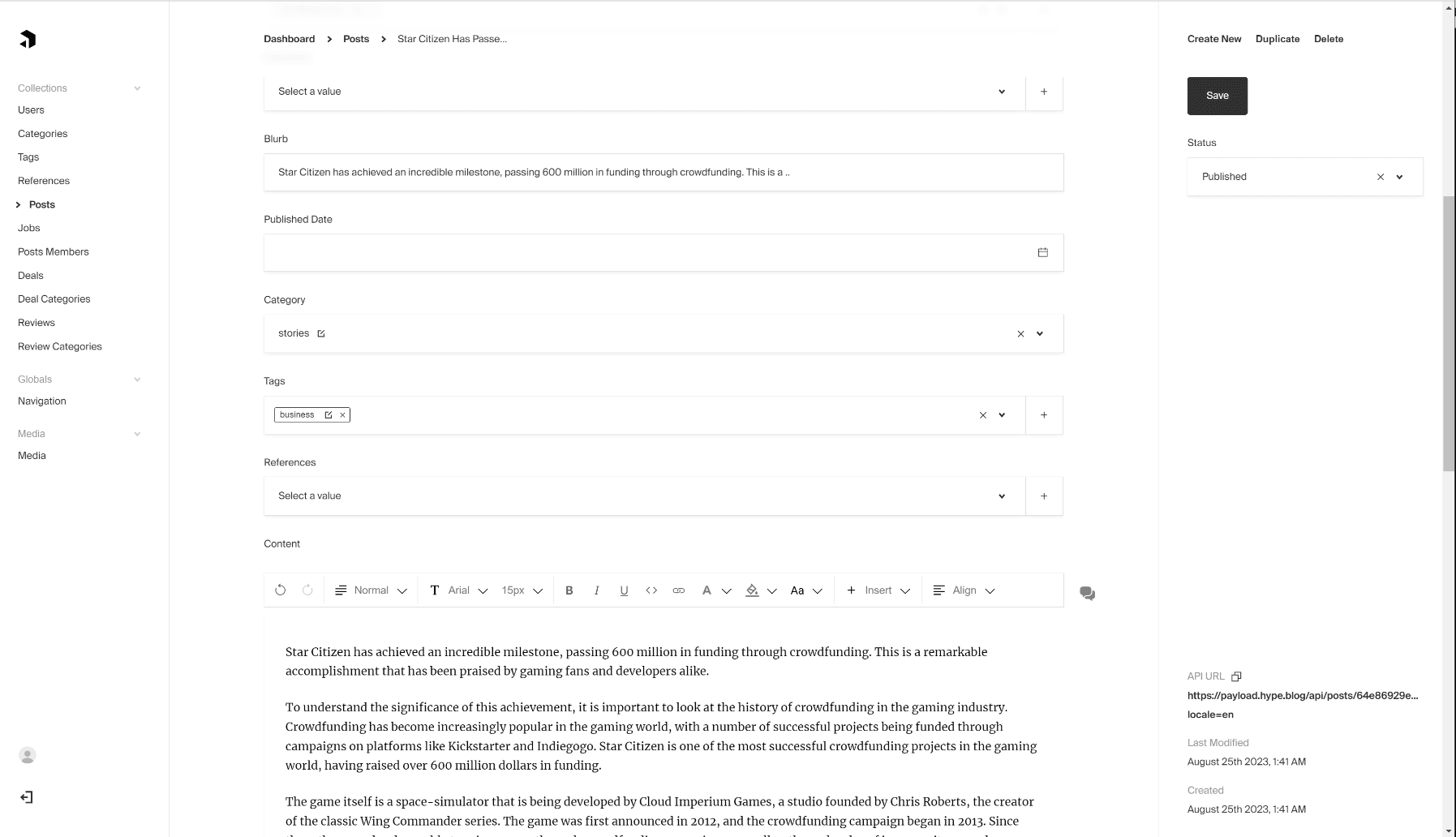 CMS dashboard using Payload CMS.
